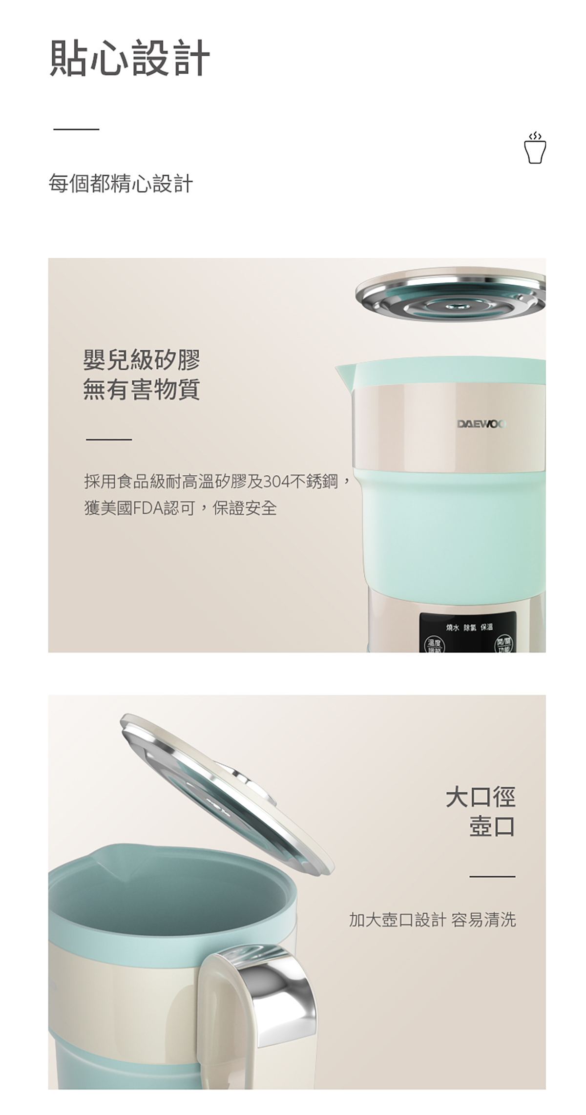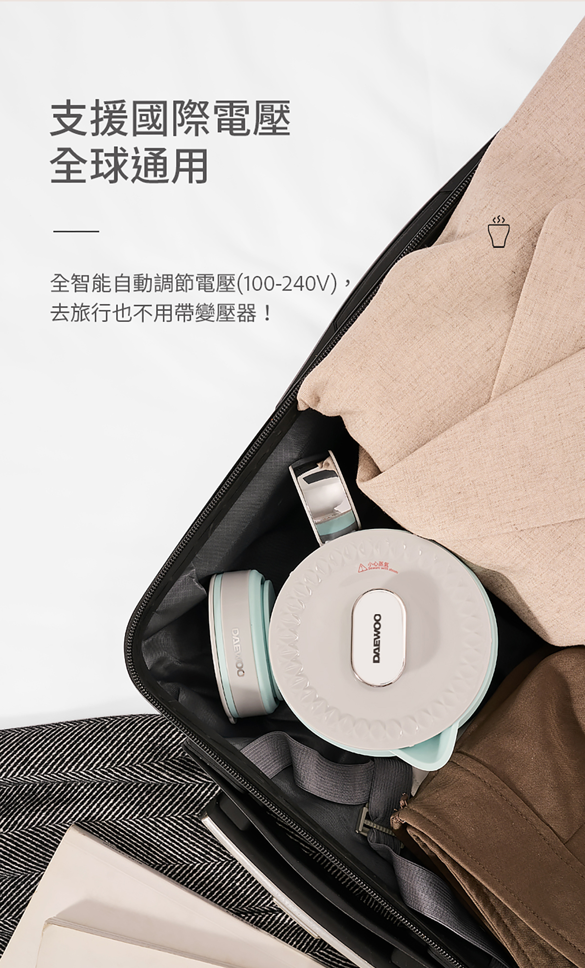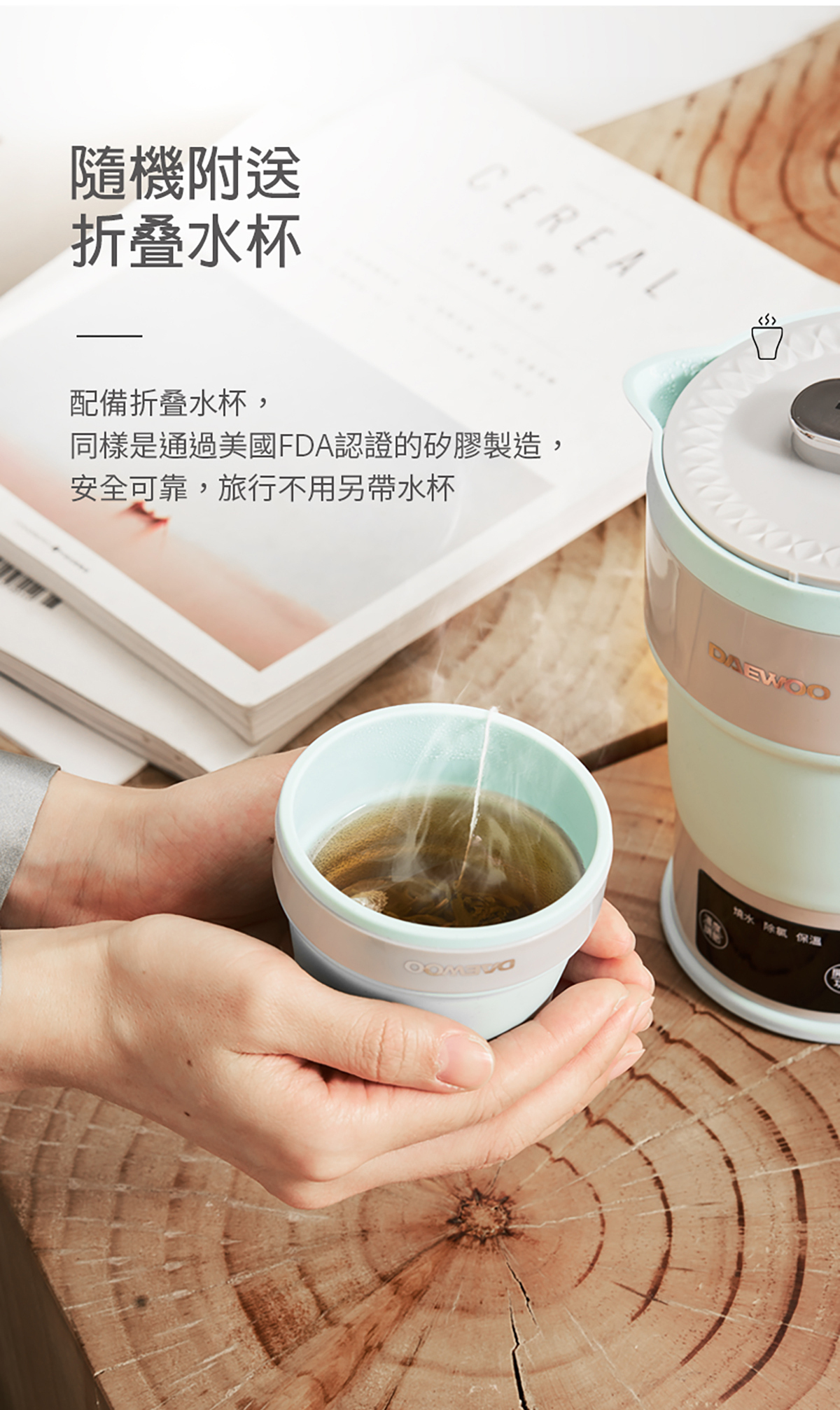 DAEWOO DY-K3 Foldable Travel Kettle foldable design, mini, light and portable, and thoughtfully equipped with a foldable travel water bottle.