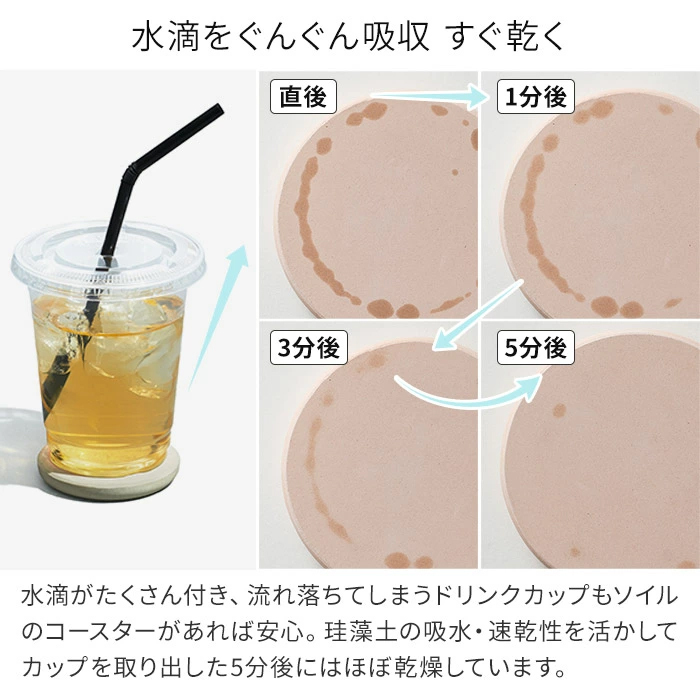 - Eco-friendly coasters made of natural material diatomaceous earth.