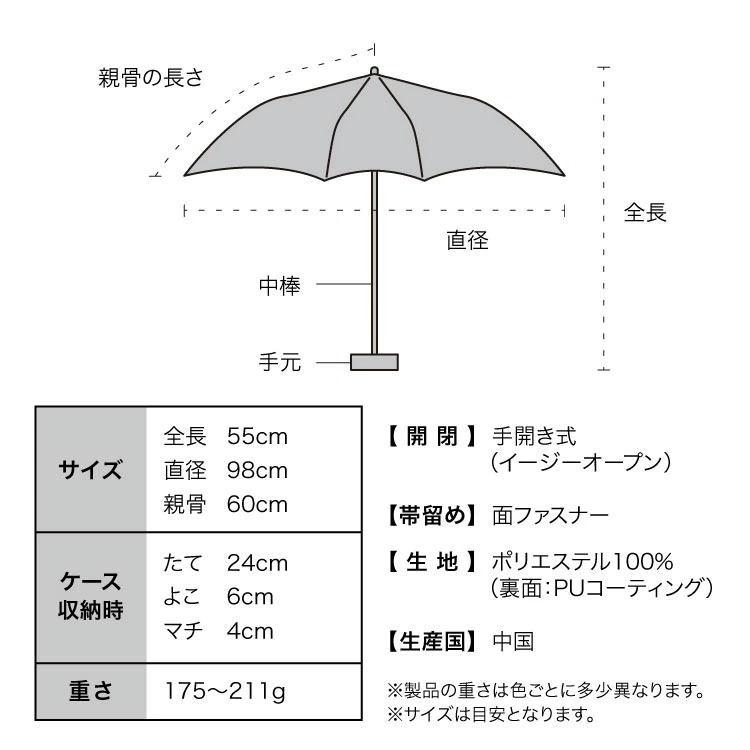 - 產品尺寸(約): 全長55cm、直徑98cm、親骨60cm