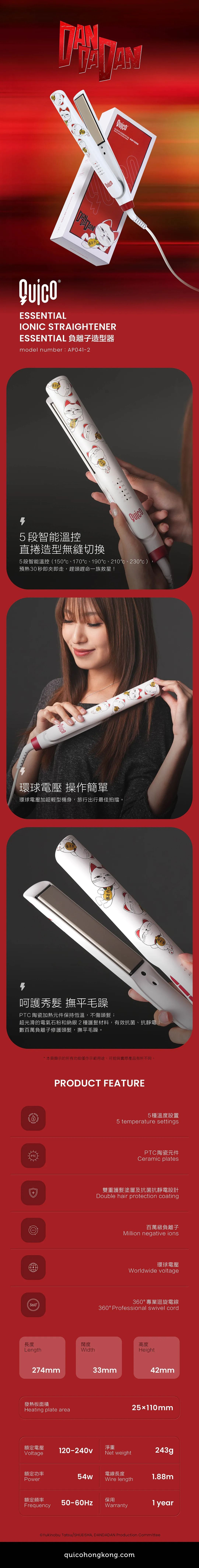 | 商品簡介 | 極速變裝令你不再跟高速婆婆一樣厭世!5段智能溫控(150°C–230°C)直捲造型無縫切換,特長陶瓷塗層防毛躁零損傷,預熱30秒即夾即走,趕頭趕命一族救星!