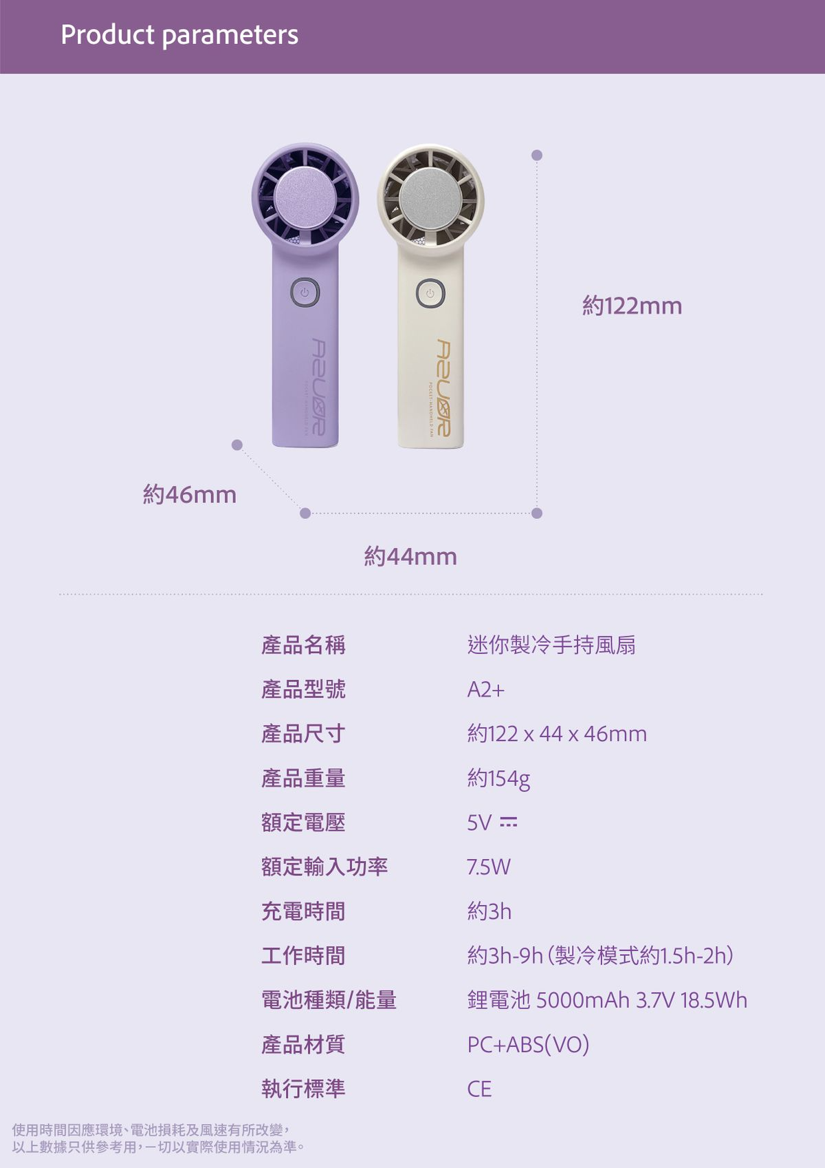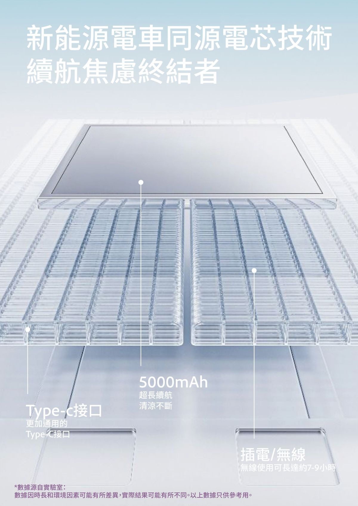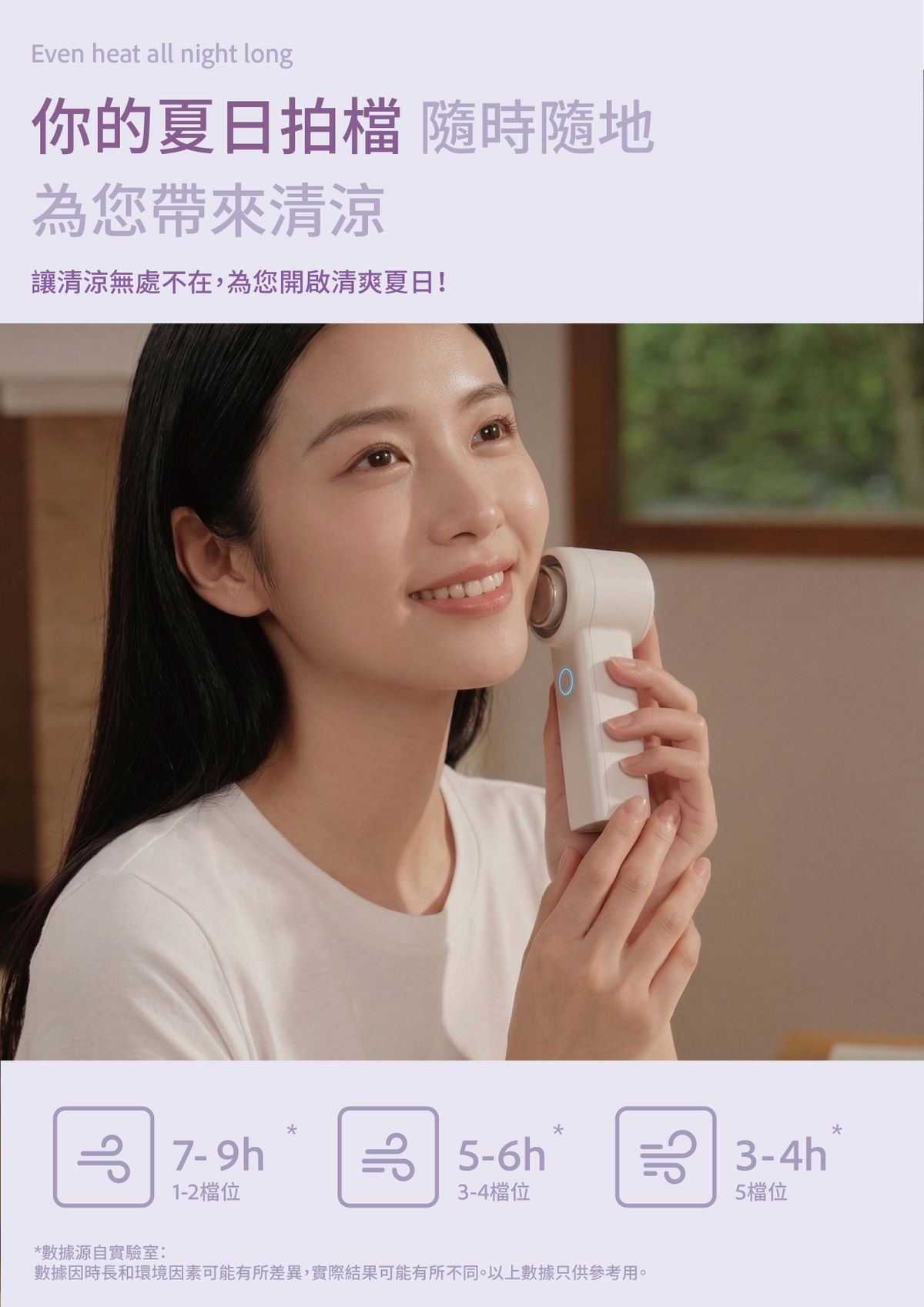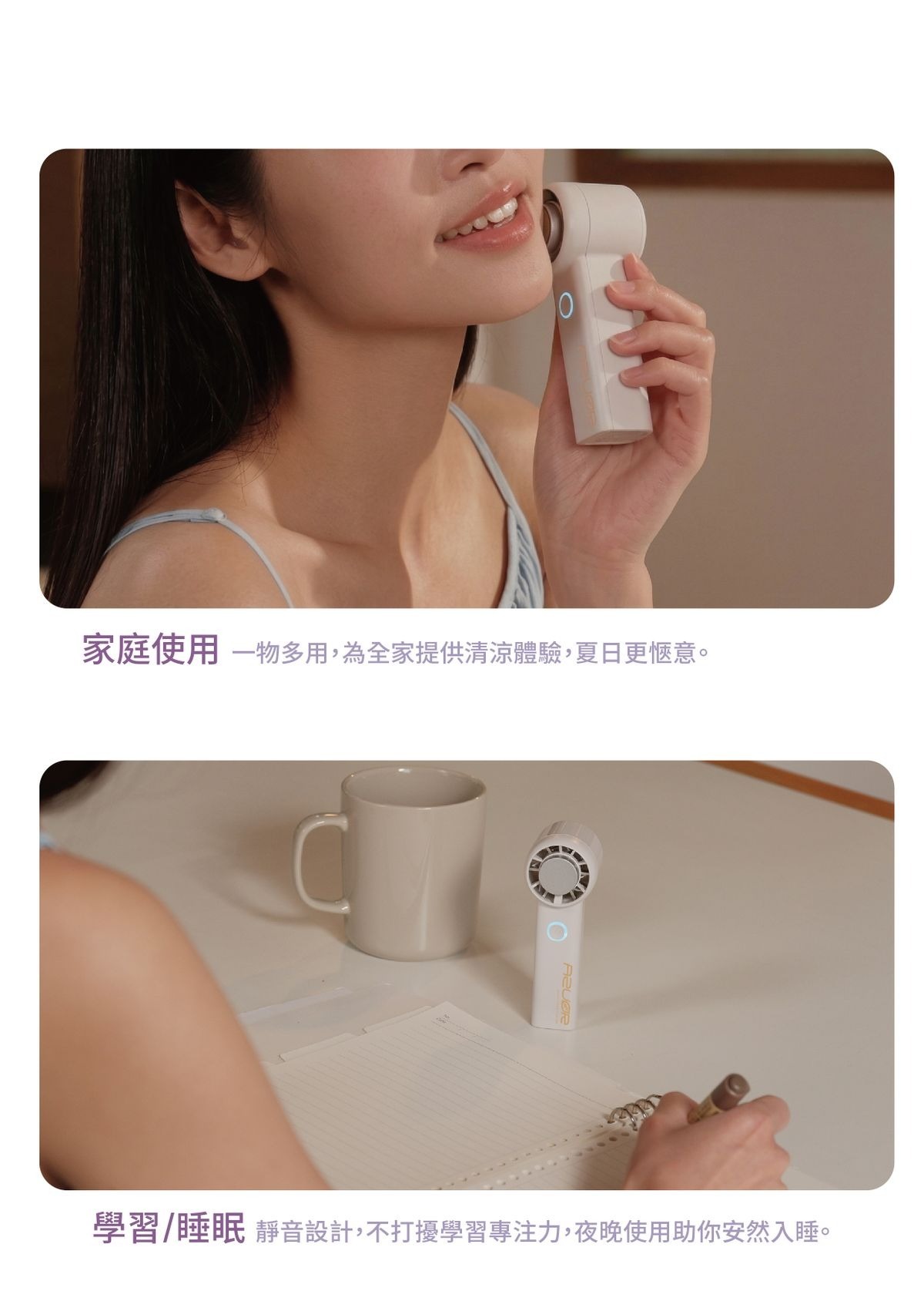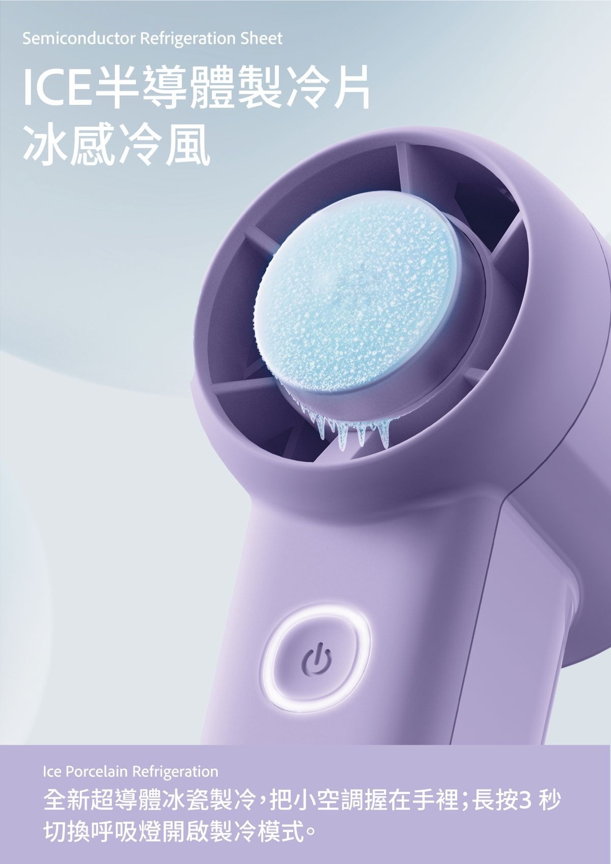 -雙重降溫系統:涼風+冰敷模式,長按3秒即時啟動半導體製冷片+冰瓷技術,手握即享涼快夏日