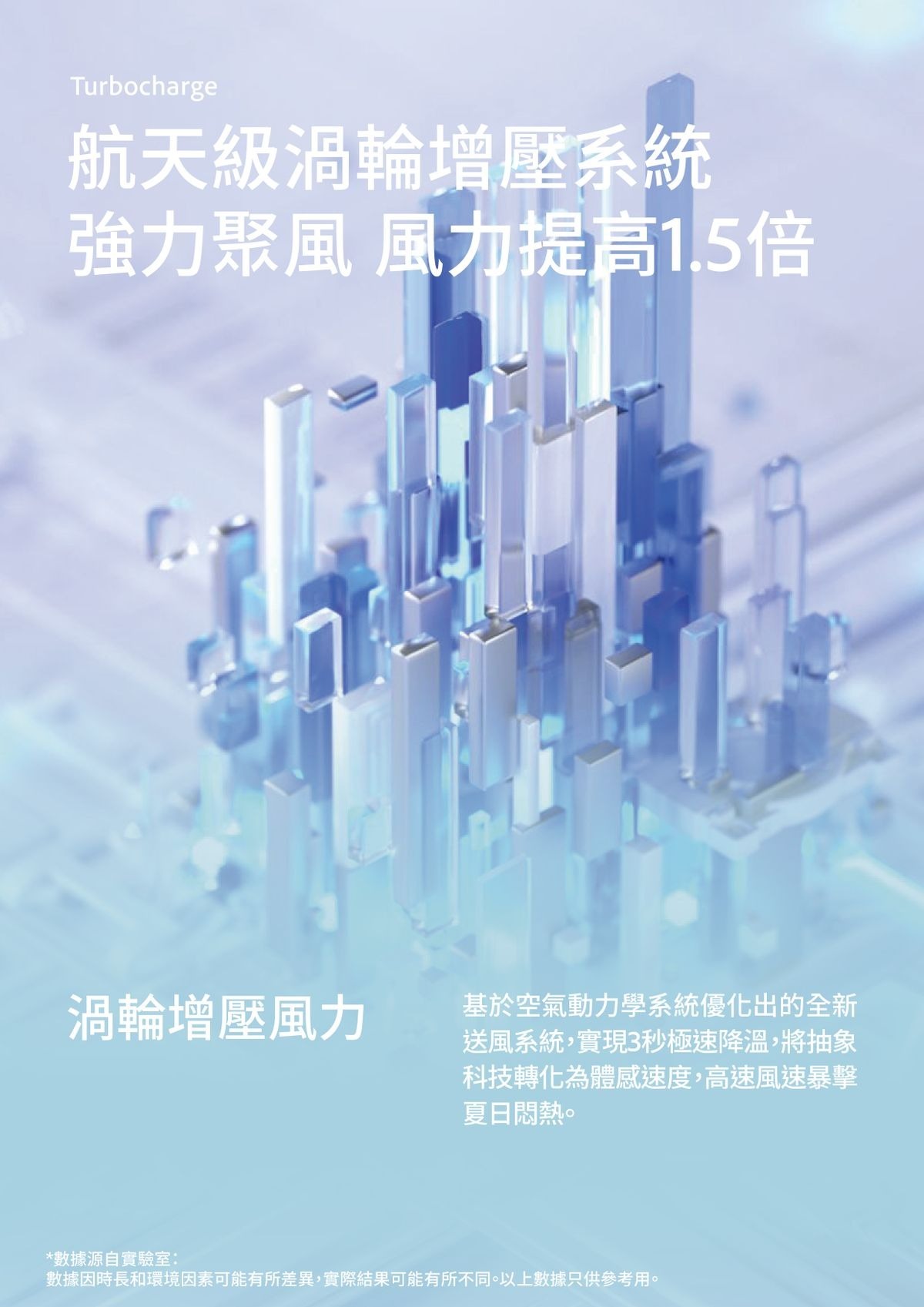 -航天渦輪增壓技術:5檔風力調節,3秒極速降溫,風力提升1.5倍,讓您感受颶風級涼感