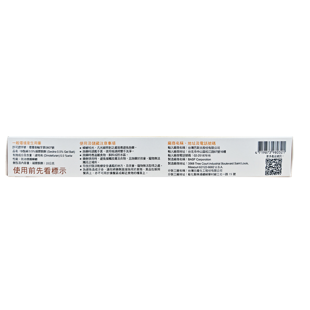 **包裝盒內只有一支凝膠餌劑,盒上印有使用說明,此產品原裝不附带說明書在盒內。