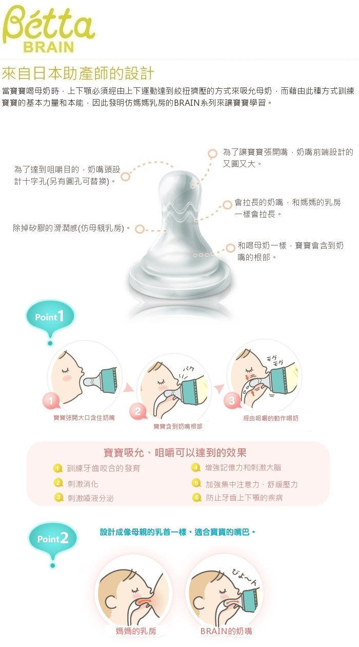 -Brain替換奶嘴的特點是完全像母親的乳頭。