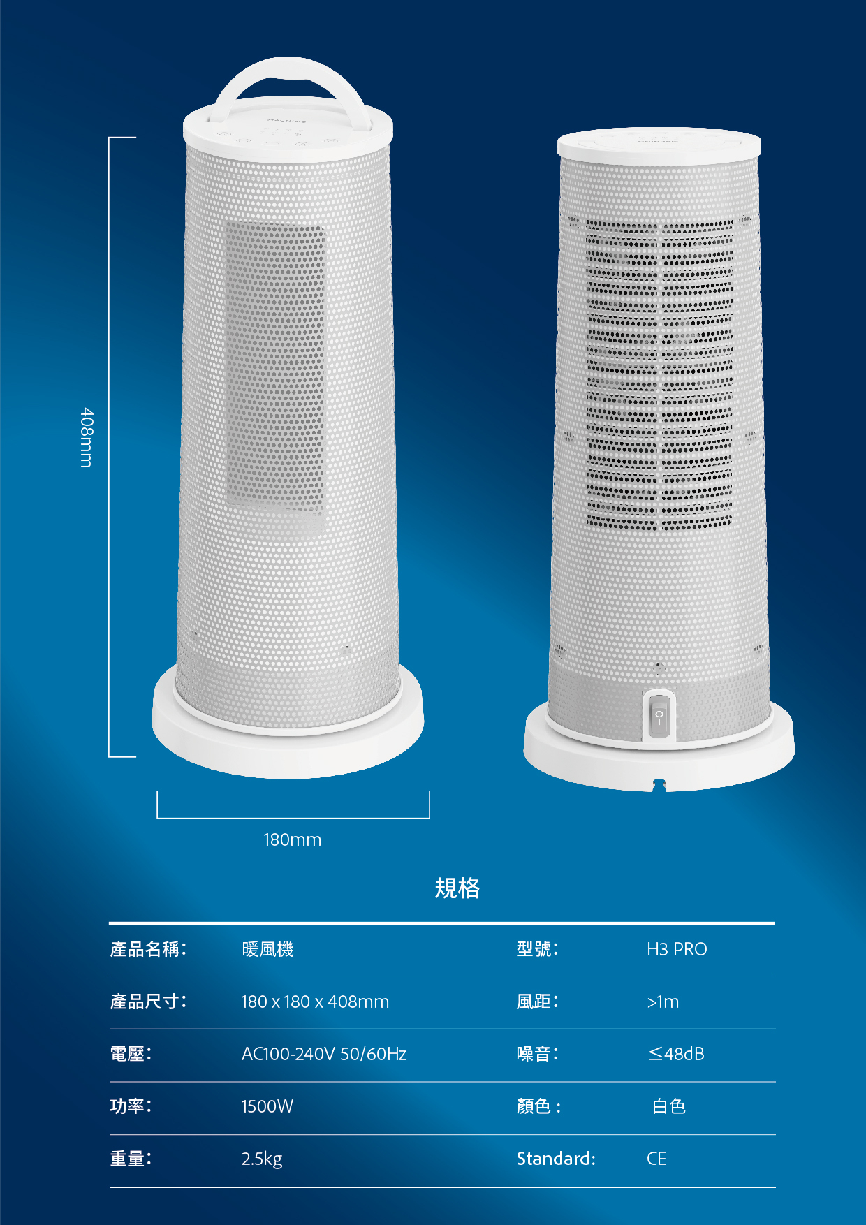 產品尺寸:180 x 180 x 408mm
