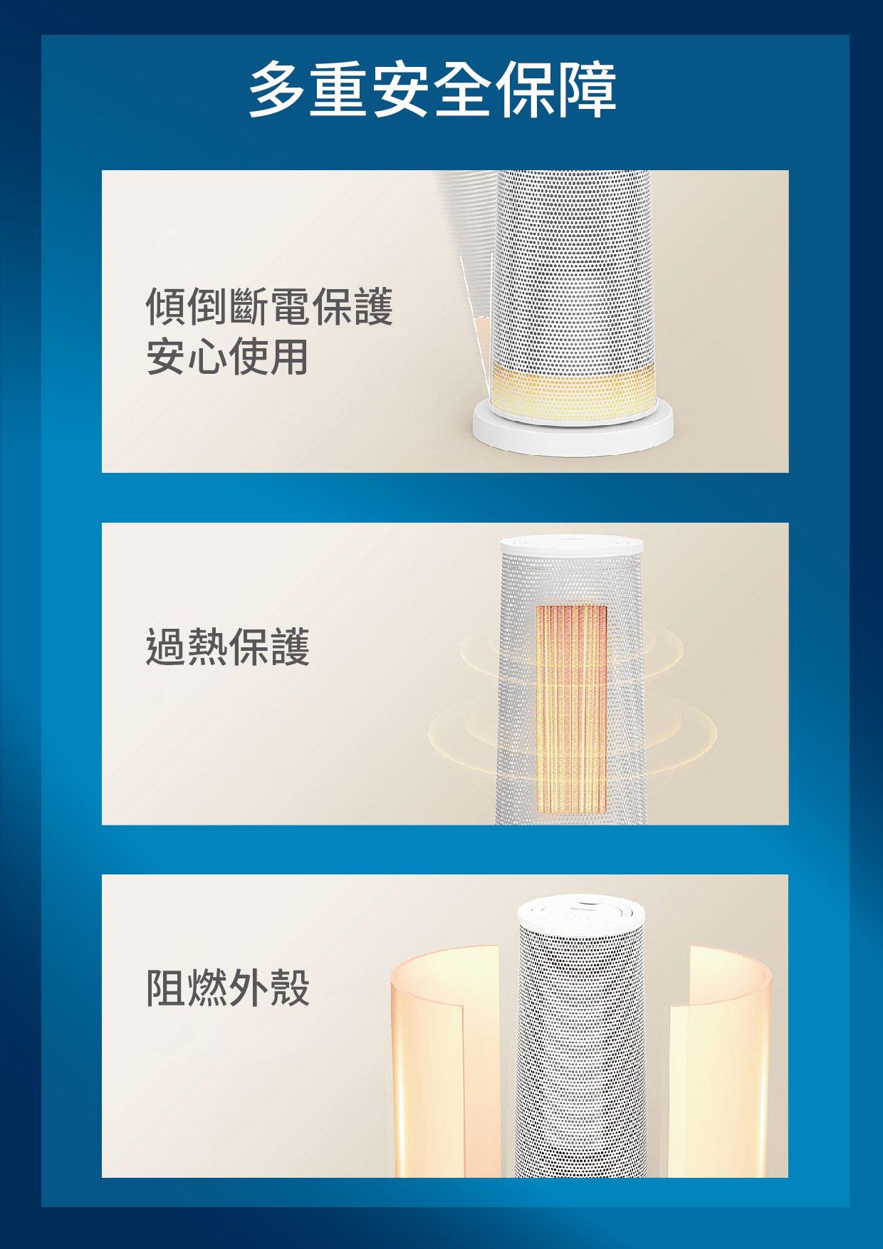 -三重安全保護:防燙外殼、傾倒斷電、過熱檢測加上兒童安全