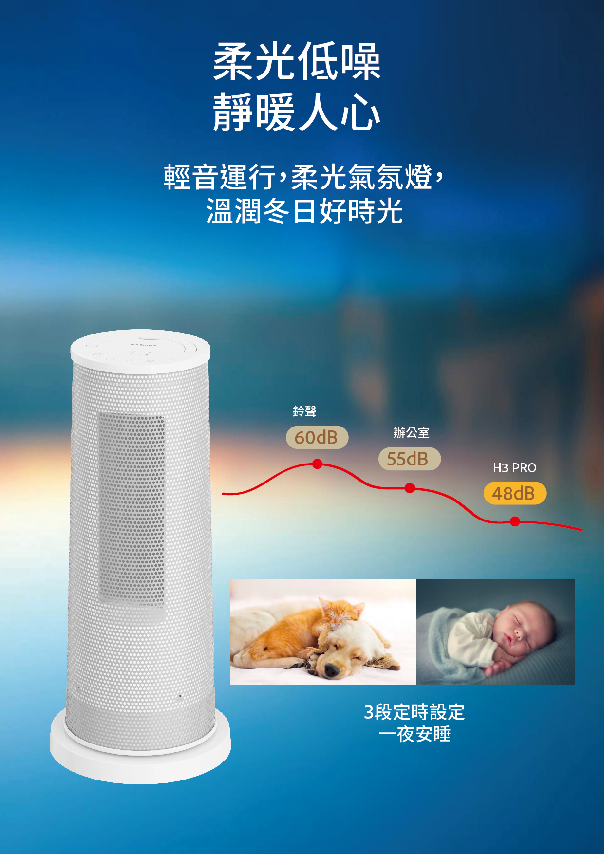 -低噪運行,最低只有約48dB,給您一個安寧的環境