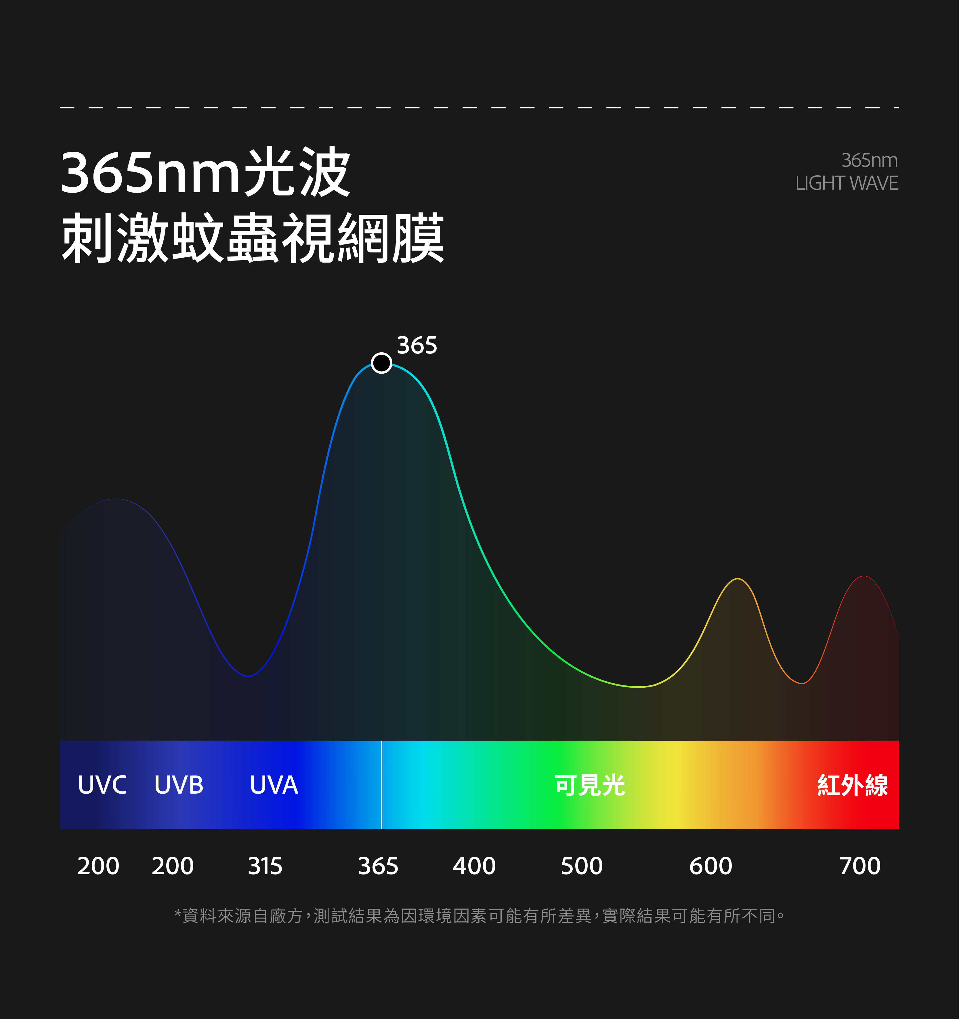 - 採用365nm 波段光誘蚊更有效