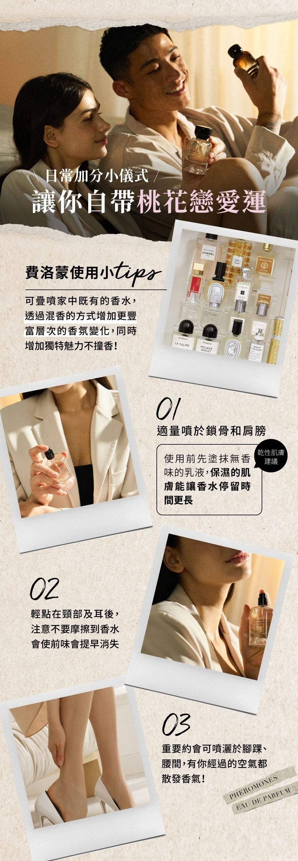 方式三:重要約會可噴灑於腳踝、腰間(低調透香,有你經過的空氣都散發香氣)。