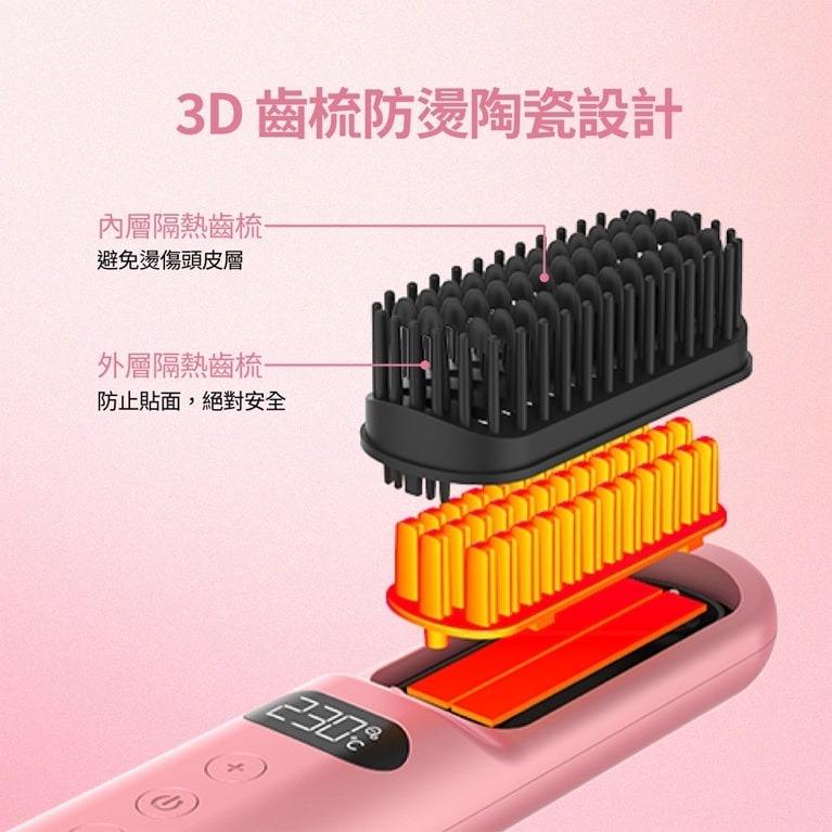 - 3D齒梳防燙陶瓷設計,讓髮絲更順滑有光澤