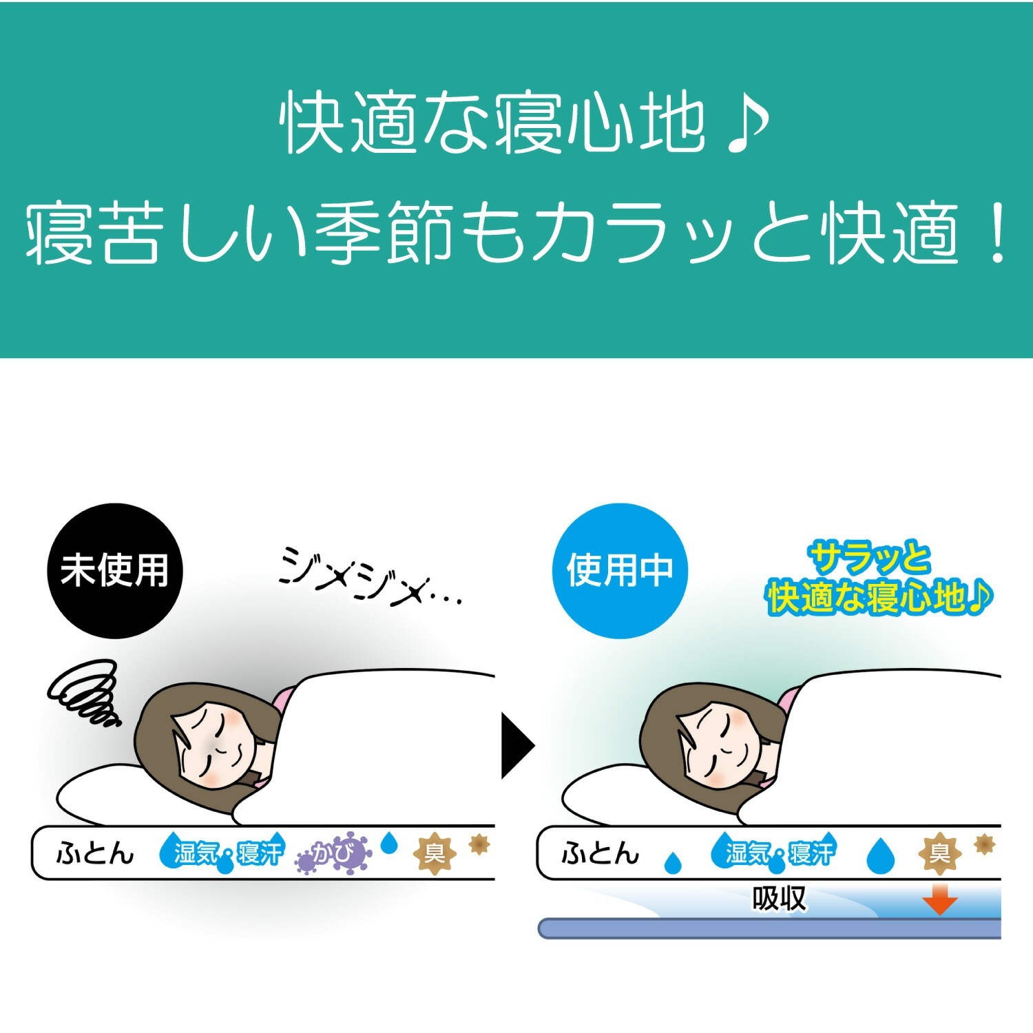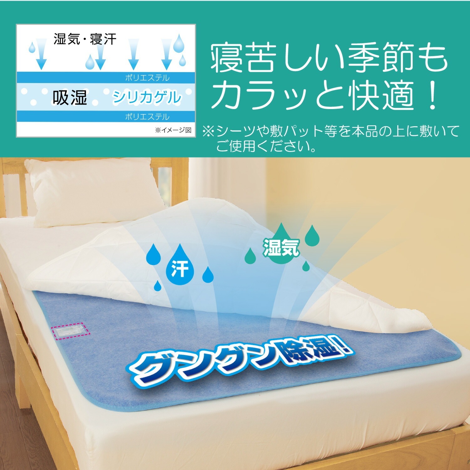 1. 放於床單和床褥之間 (吸走汗濕和水氣)