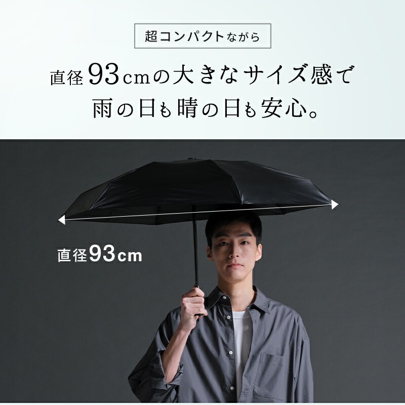 這是一把緊凑型雨傘!體積不大,但打開後直徑達93CM。100%完全遮光,最高等級的防水性能,無論雨天或晴天都非常適合!