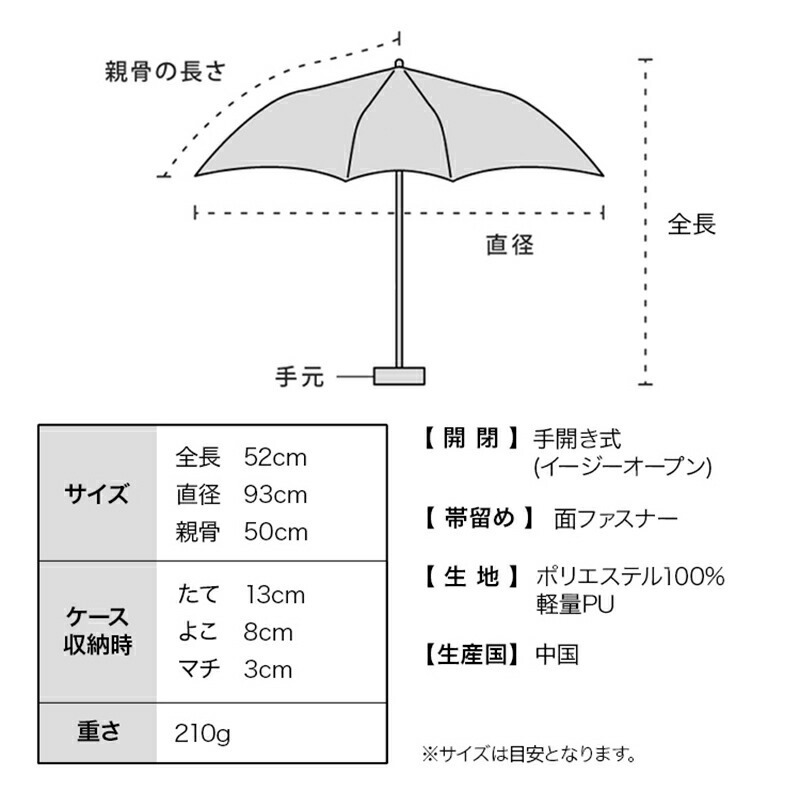 - 產品尺寸(約): 全長52cm、直徑93cm、親骨50cm