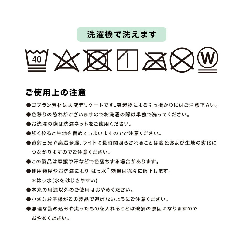 - 布料經過防撥水處理,不容易沾污及沾濕
