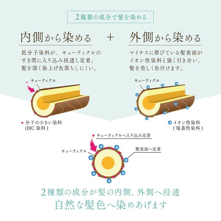 -利用離子結合方式,將顏色完整地鎖於頭髮表層,而不傷髮芯