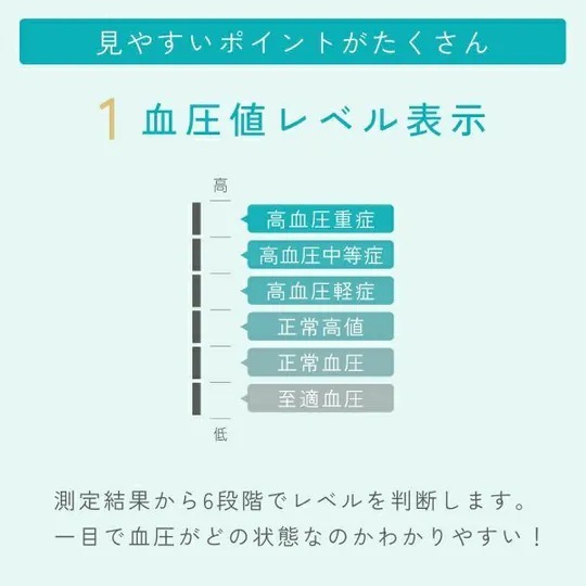 您日常健康管理的理想助手!這款來自日本的血壓計專為便捷使用而設計,能夠記錄兩人的測量結果,幫助家庭成員輕鬆追蹤各自的健康數據。其清晰顯示6級血壓水平,讓您立即了解血壓狀況。