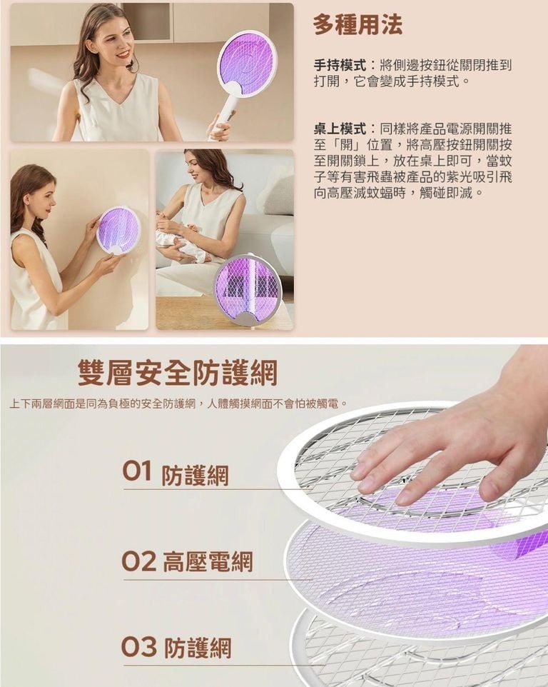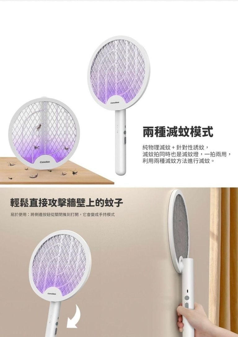 - 180度旋轉手柄,滅蚊拍同時也是滅蚊燈,一拍兩用