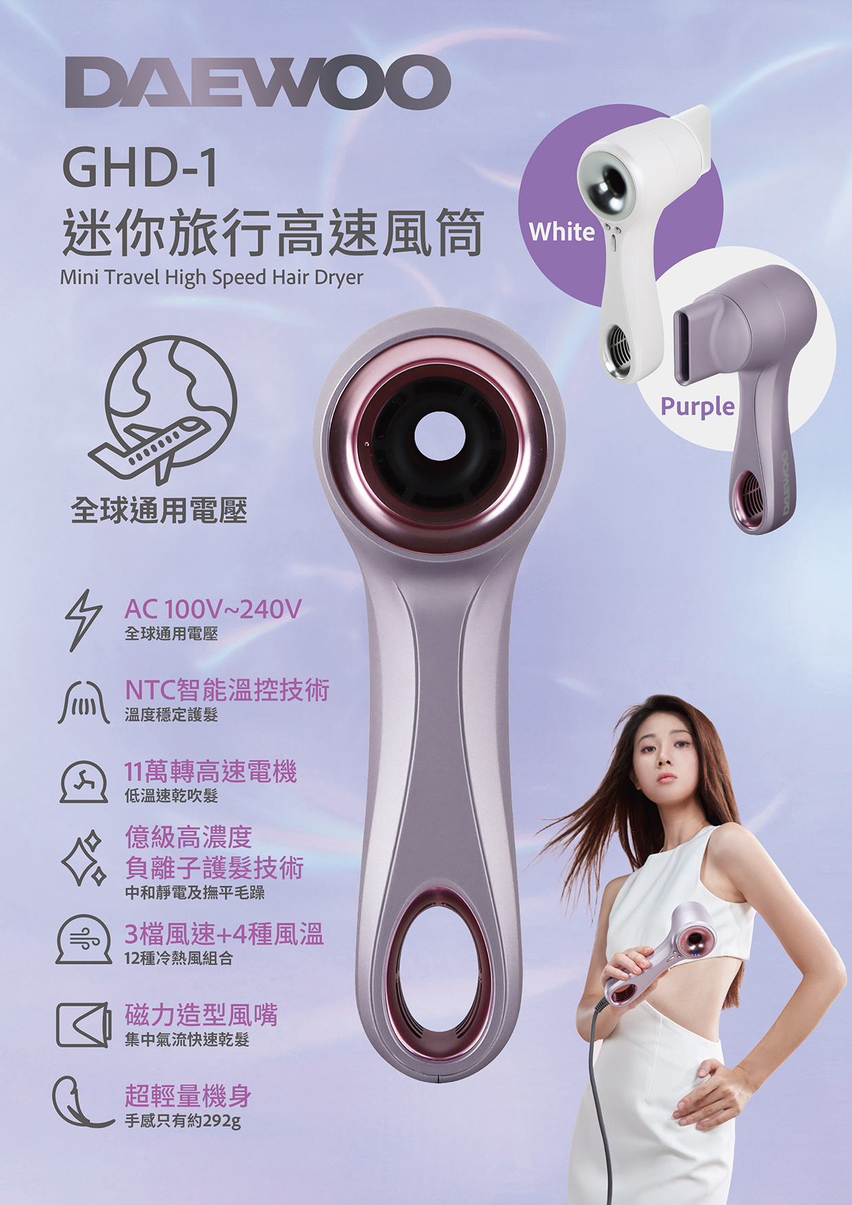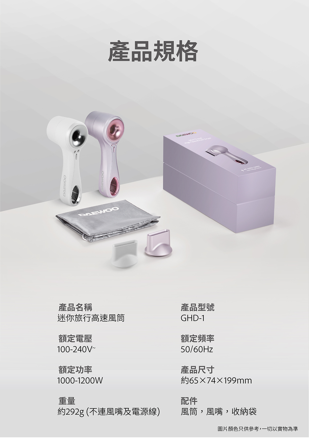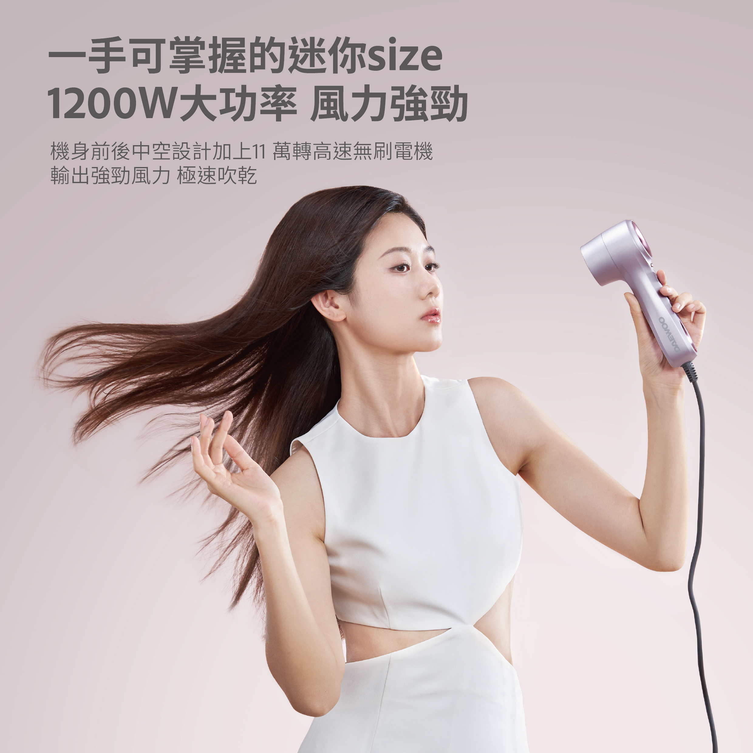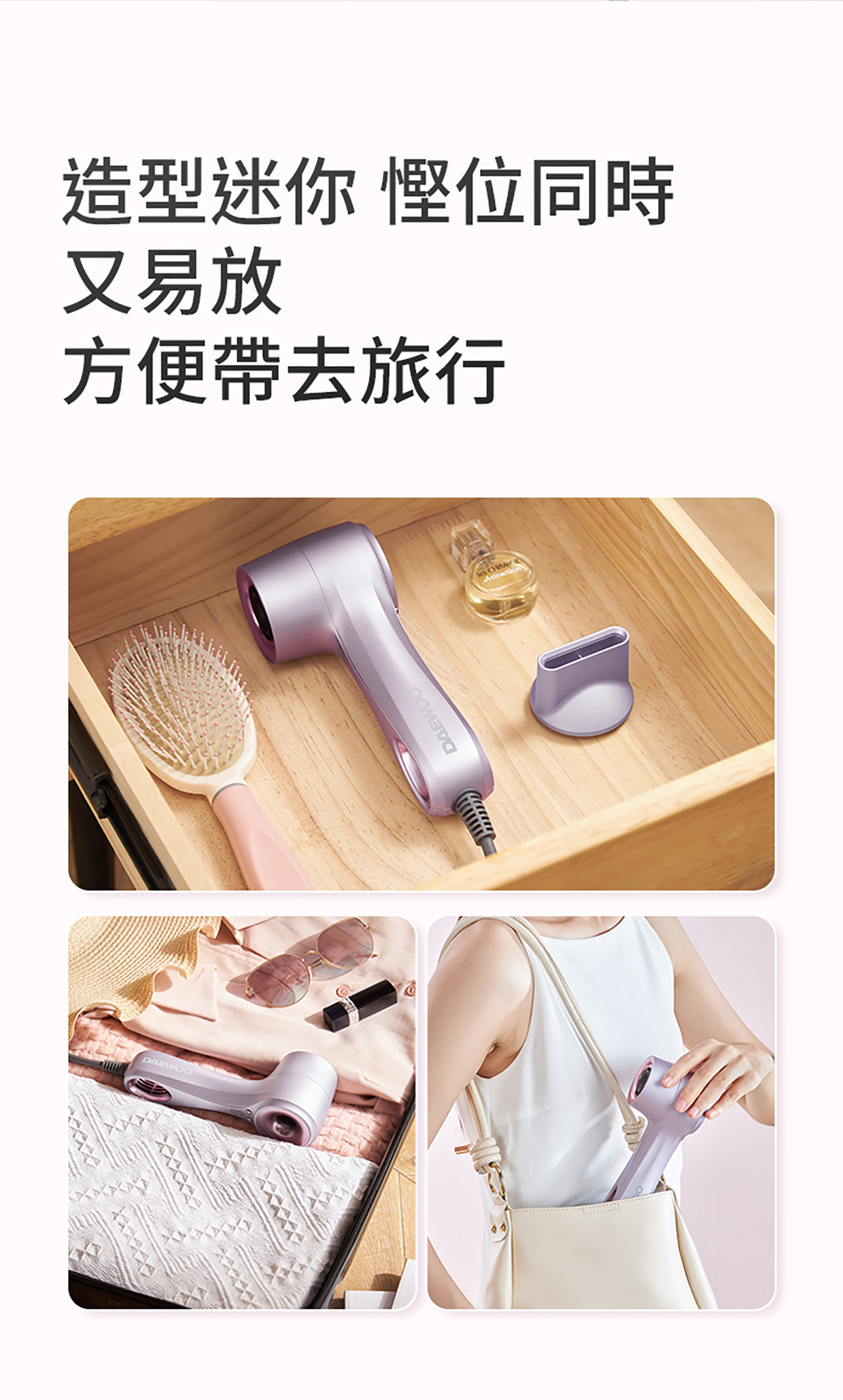DAEWOO 推出GHD-1迷你旅行高速風筒,一款家用旅行兩用的風筒