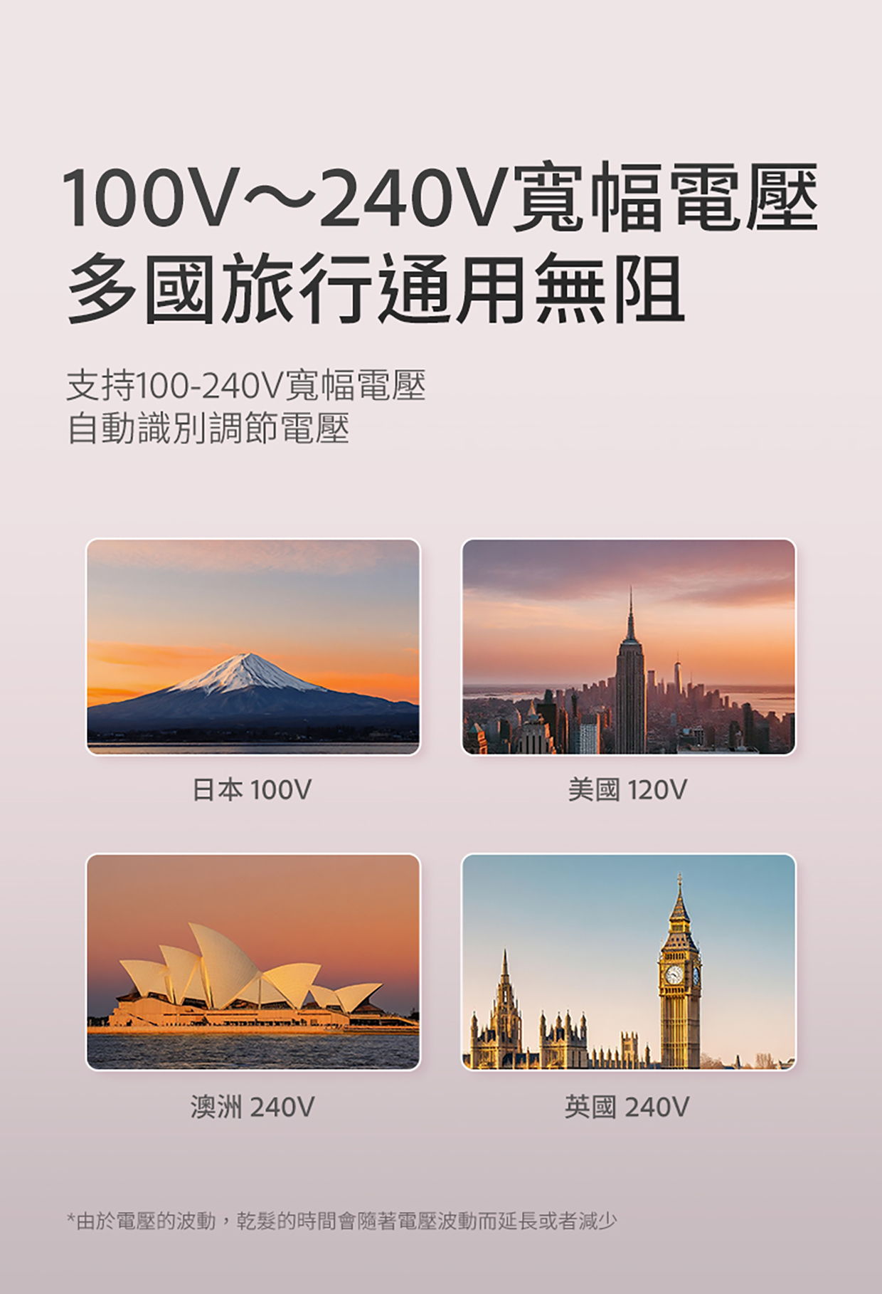 -採用100-240V全球通用電壓,自動識別調節電壓