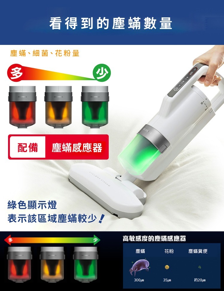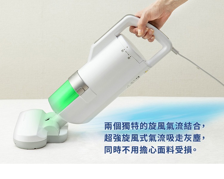 -兩個獨特的旋風氣流結合,有效吸走塵蟎,同時不用擔心面料受損