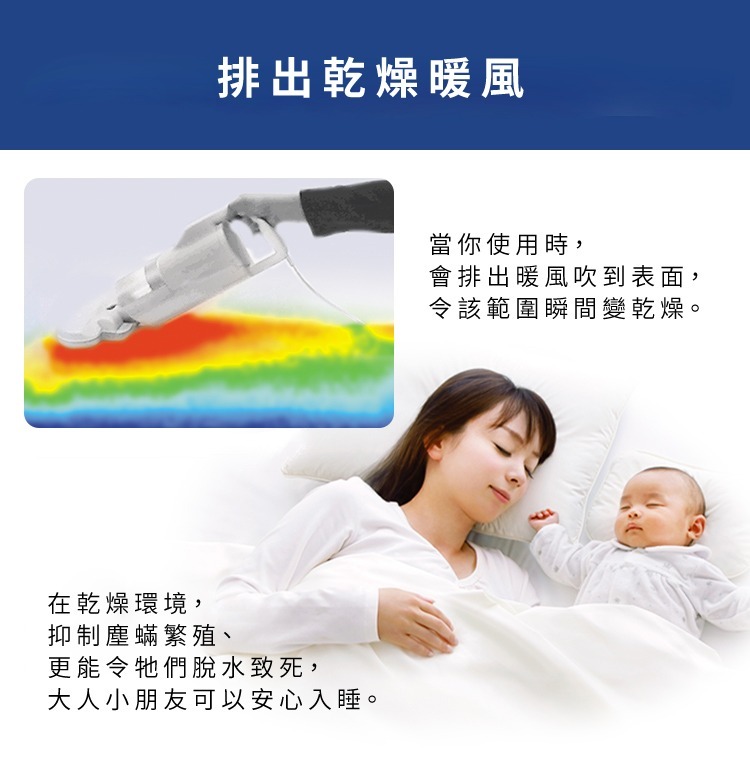 -暖風吹送,降低濕度,更容易殺死塵蟎和抑制滋生