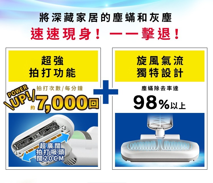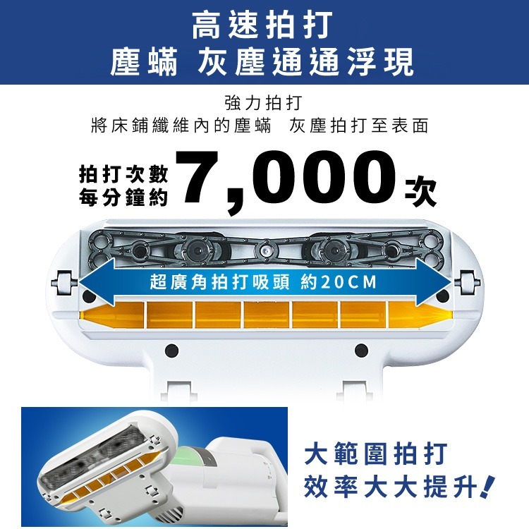 -每分鐘拍打約7000次與暖風功能來降低室內濕度,降低塵蟎生成