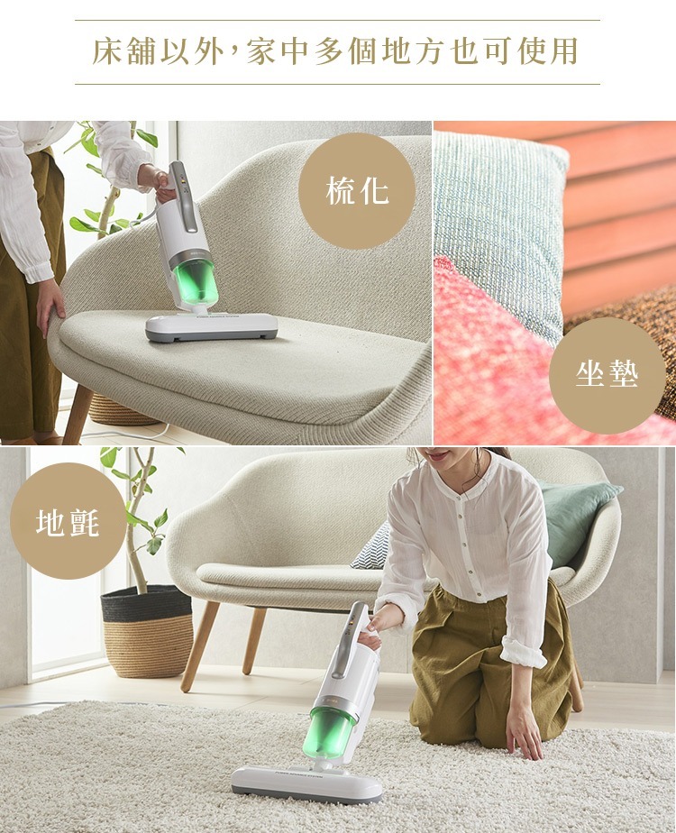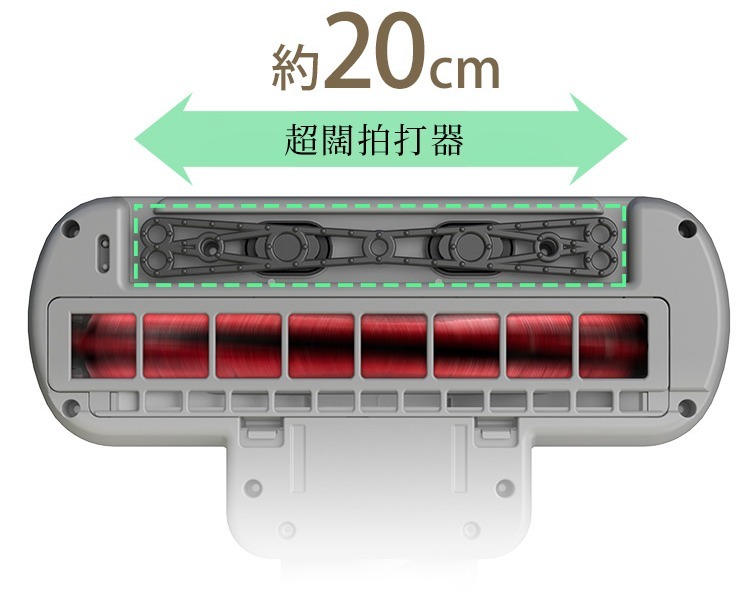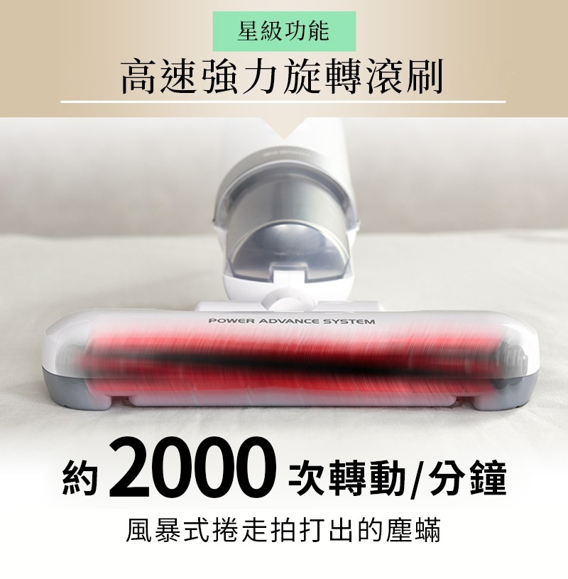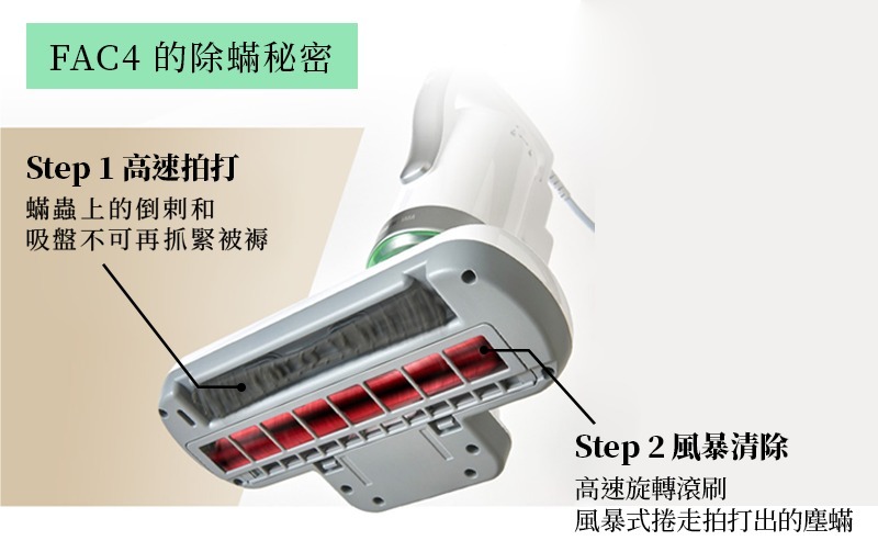 - 獨有的高速強力旋轉滾刷,風暴式捲走拍打出的塵蟎