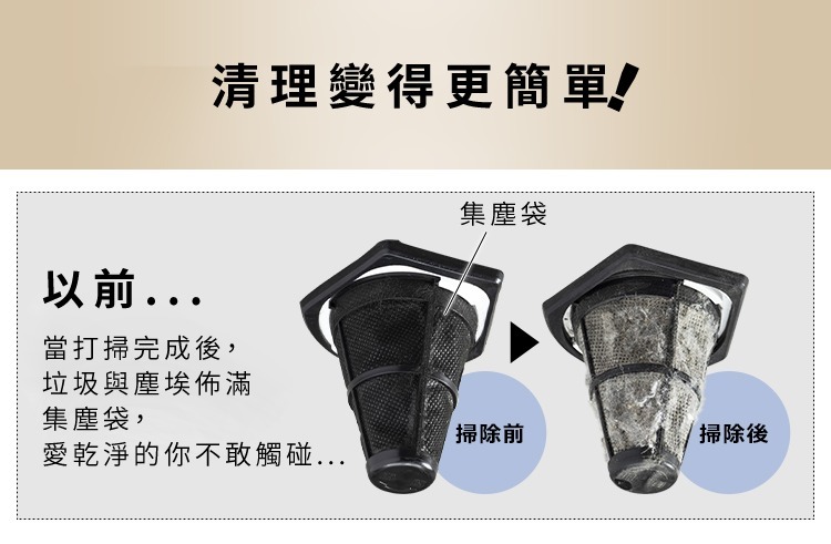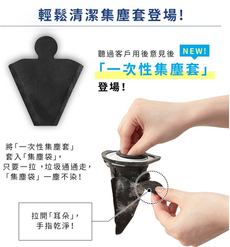 - 一次性集塵套,使用後即可丟掉,方便懶人使用。