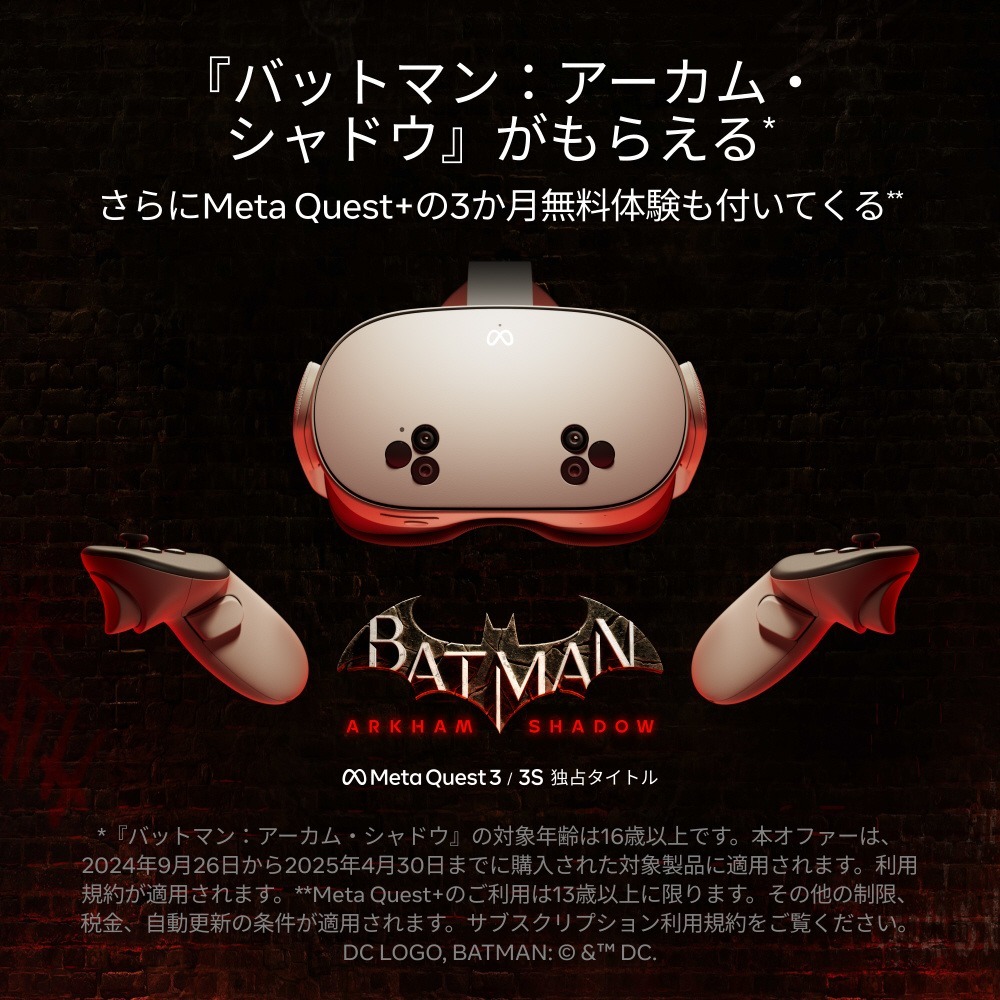 -限定期間內購買 Meta Quest 3S 即獲贈《Batman:Arkham Shadow》及3個月 Meta Quest+