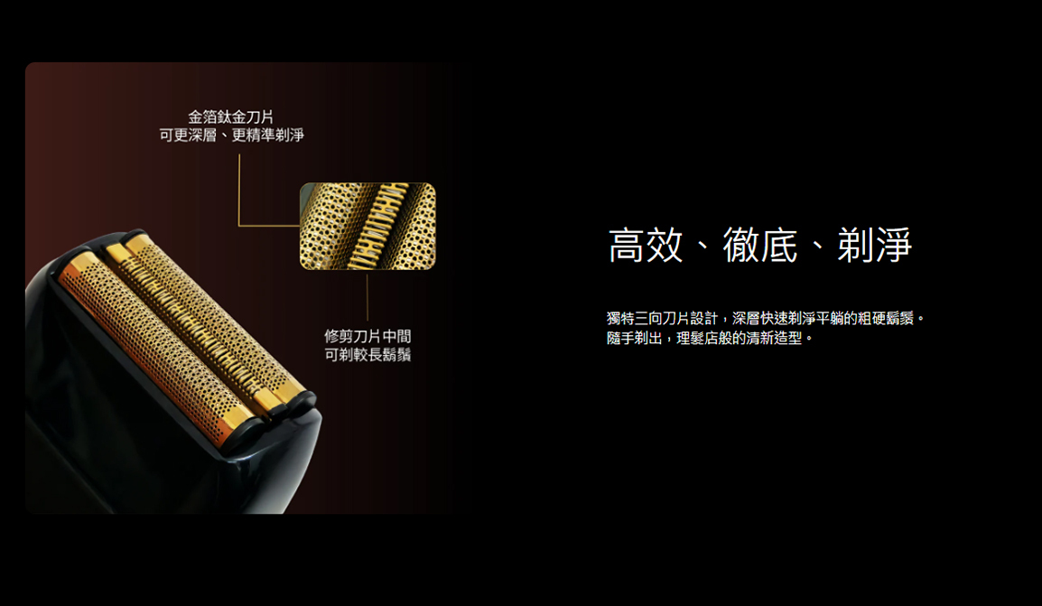 -三向刀片設計,深層快速剃净粗硬鬍鬚