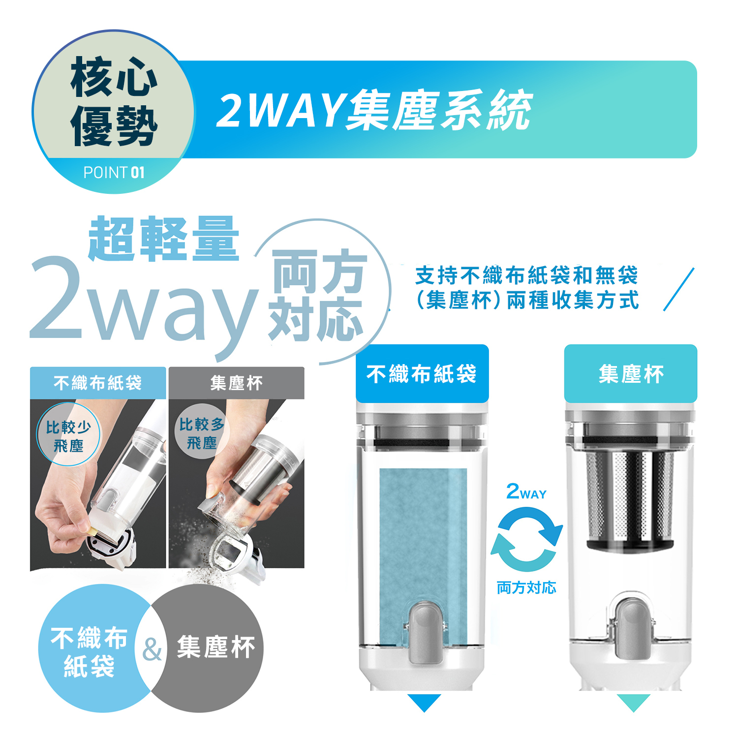 •時尚灰透色集塵杯:採用時尚雅緻的灰透色集塵杯設計,可有效隱藏吸入的污垢,保持居家整潔美觀。