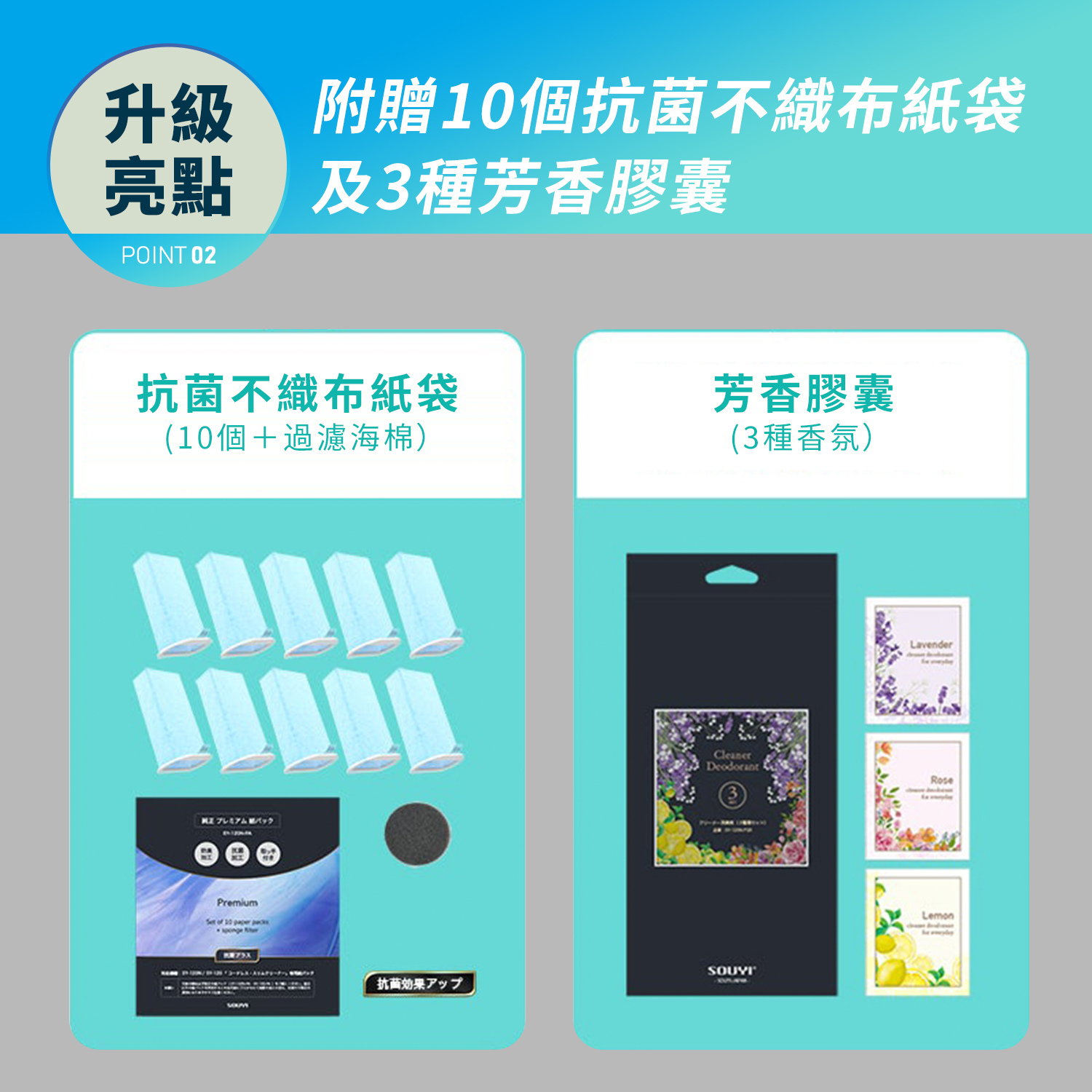 •附贈10個抗菌不織布紙袋及香薰除臭包:隨機附送10個耐用不織布紙袋,並提供香氛包,清潔同時享受清新芳香。