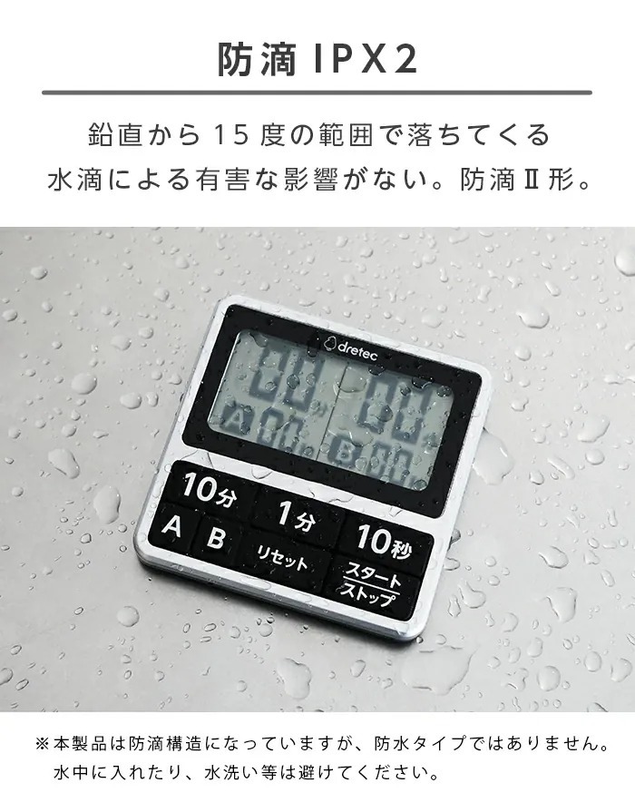 防水規格:JIS C0920 IPX2 ※在15°C以內的溫度下防濺水