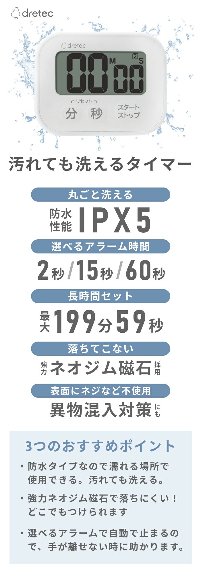 -易於清洗的防水定時器(IPX5)