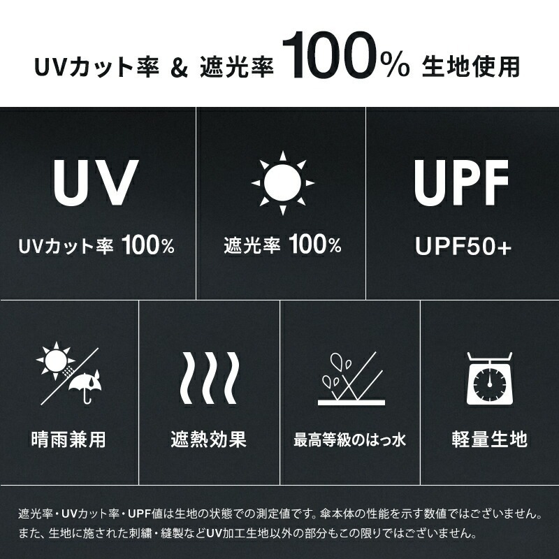 - 晴雨兼用,100%遮光率及防UV率,UPF50+